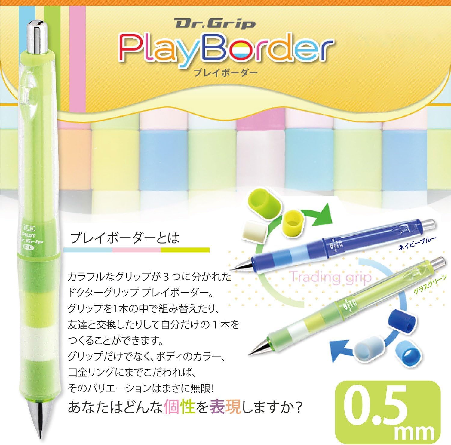 PILOT Mechanical Pencil Dr.Grip CL PlayBorder, 0.5mm, Glass Green, HDGCL-50R-PGG