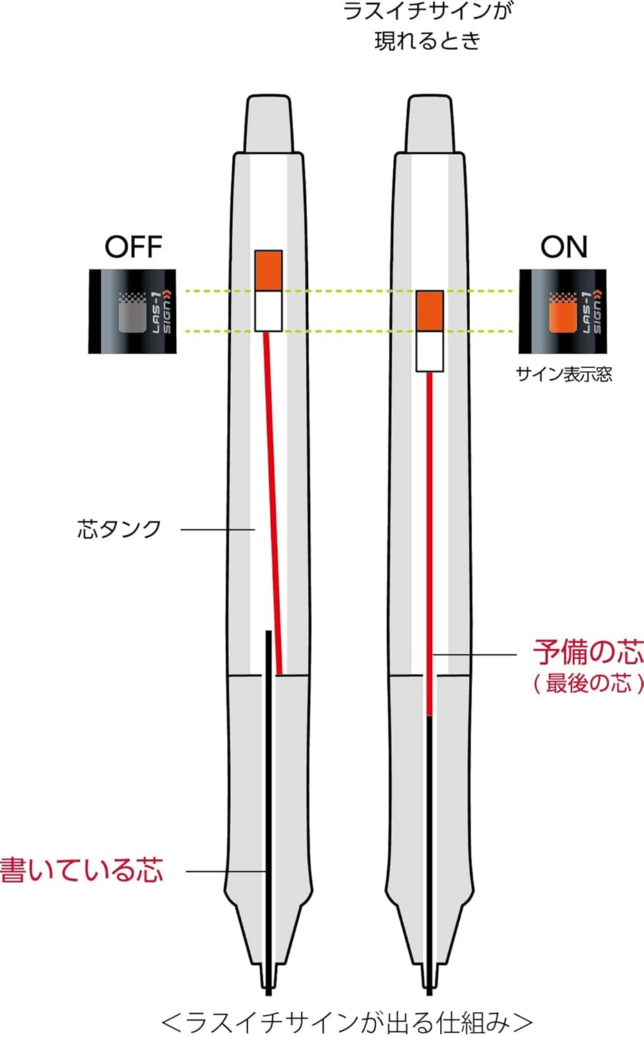 It�fs often hard to tell when your lead is running low. The Last Lead Sign changes the color of the top of the pen to orange when you�fre down to your last piece of lead, alerting you that it�fs time to refill! Not only does it signal when to replace the lead, but it also gives you a sense of accomplishment for writing so much! Note: Depending on the lead length, the sign may change even if more than one piece of lead is left.