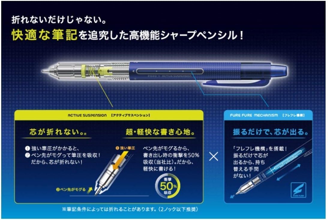 The "Active Suspension" mechanism absorbs 50% of the shock (compared to our previous models) when the lead retracts during writing, ensuring a light and smooth writing feel.