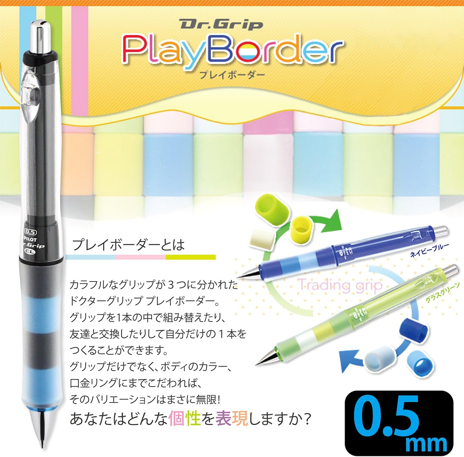 PILOT Mechanical Pencil Dr.Grip CL PlayBorder, 0.5mm, Black & Blue, HDGCL-50R-PBL