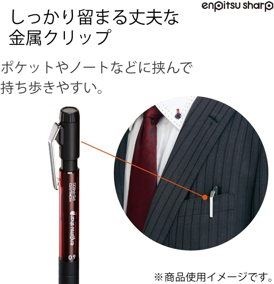 KOKUYO Mechanical Pencil Enpitsu Sharp TypeM Rubber Grip, 0.9mm Red, PS-P400R-1P