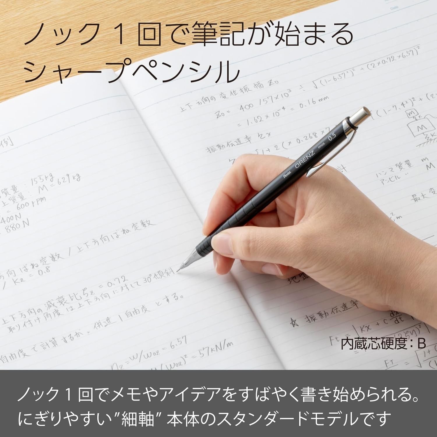 An amazingly break-resistant mechanical pencil that delivers a smooth and stress-free writing experience. Equipped with the Orenz system, the sliding tip pipe moves forward as the lead wears down, continuously protecting the lead.
